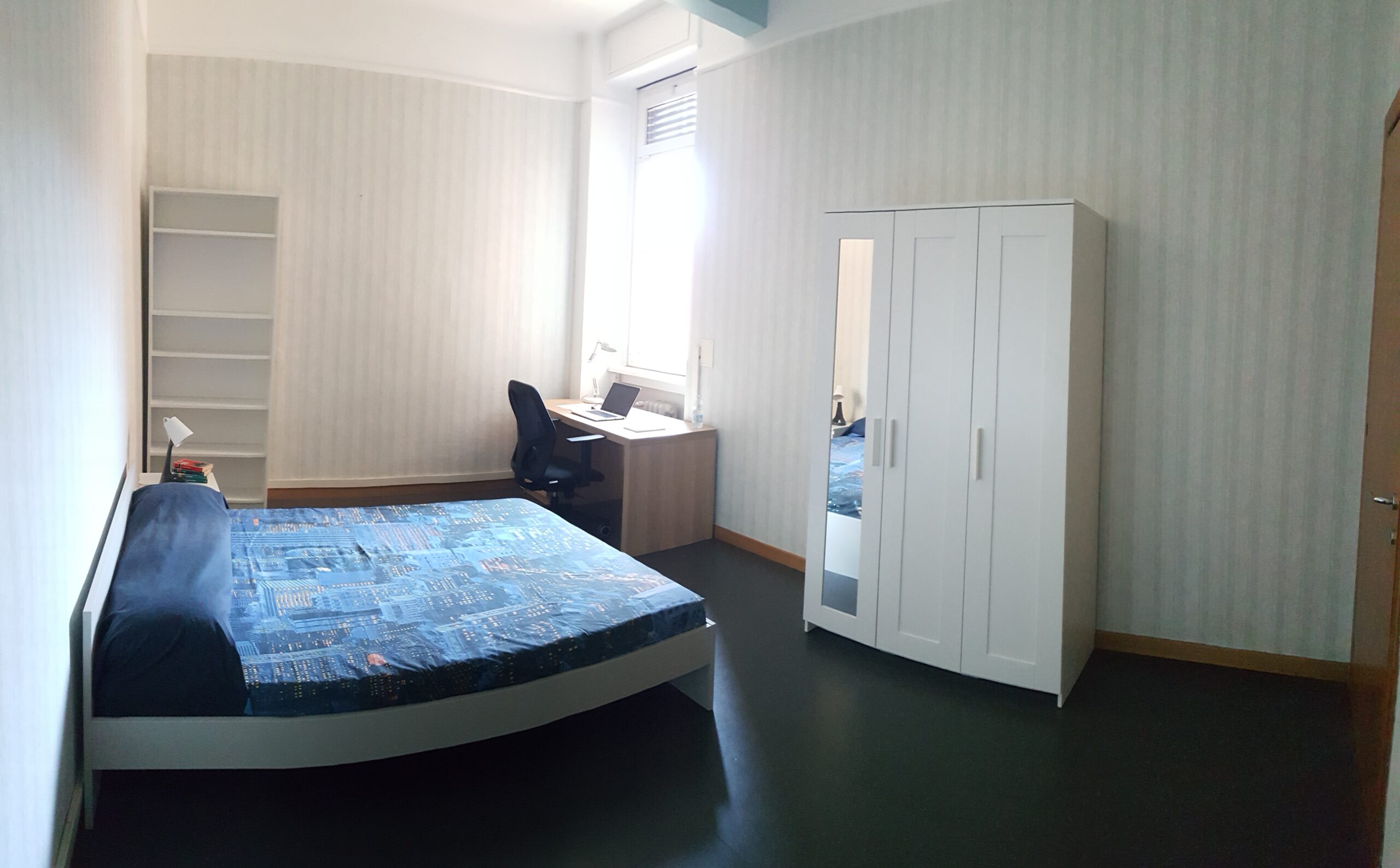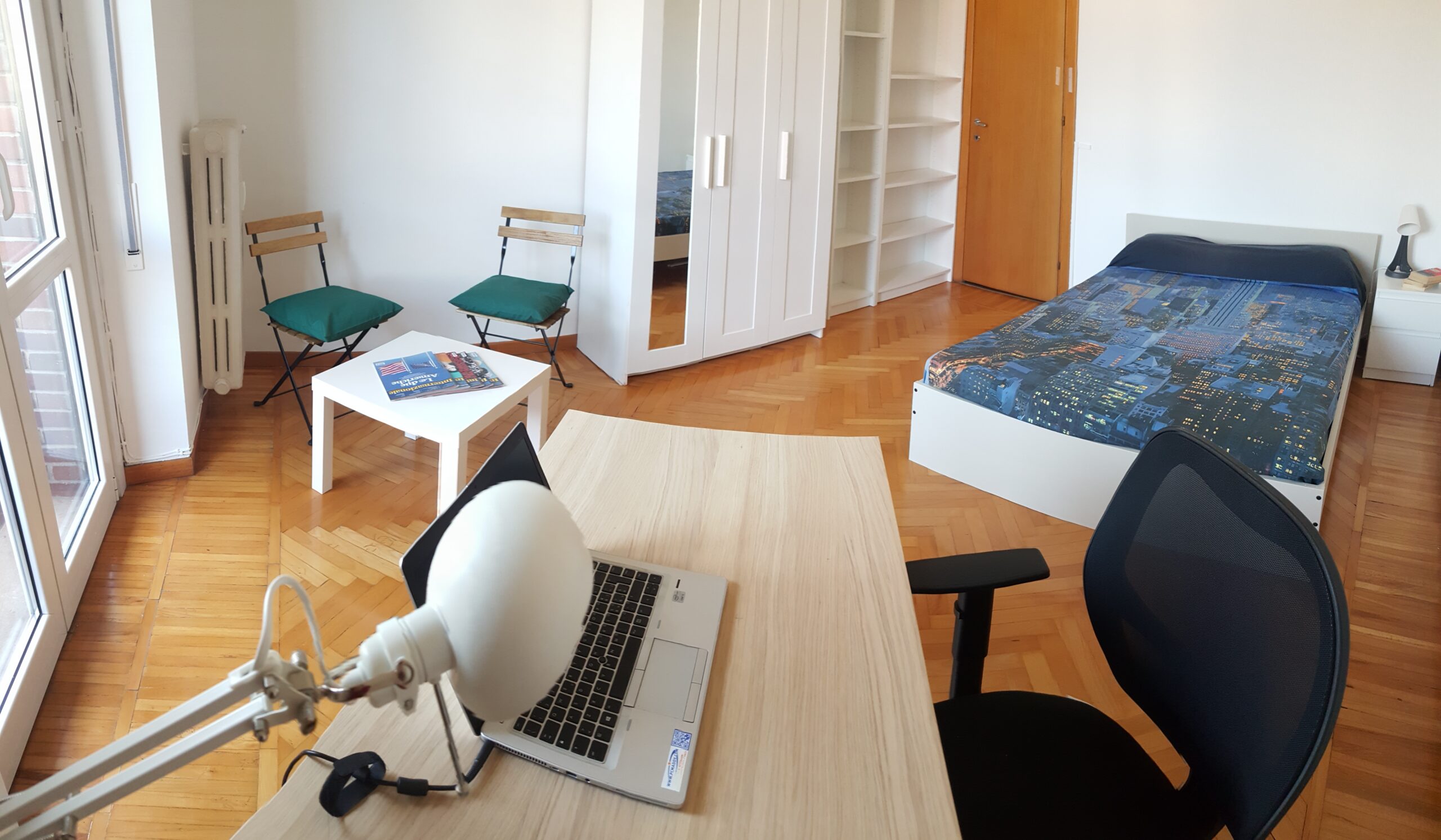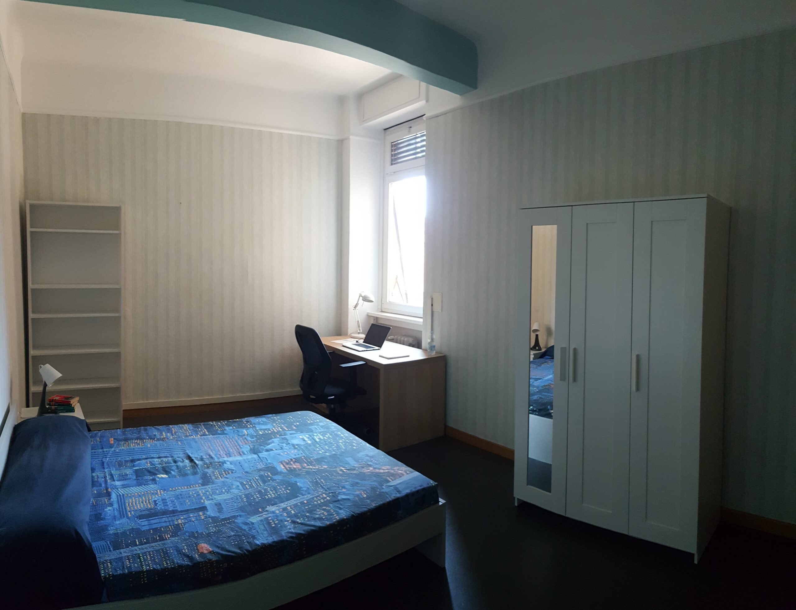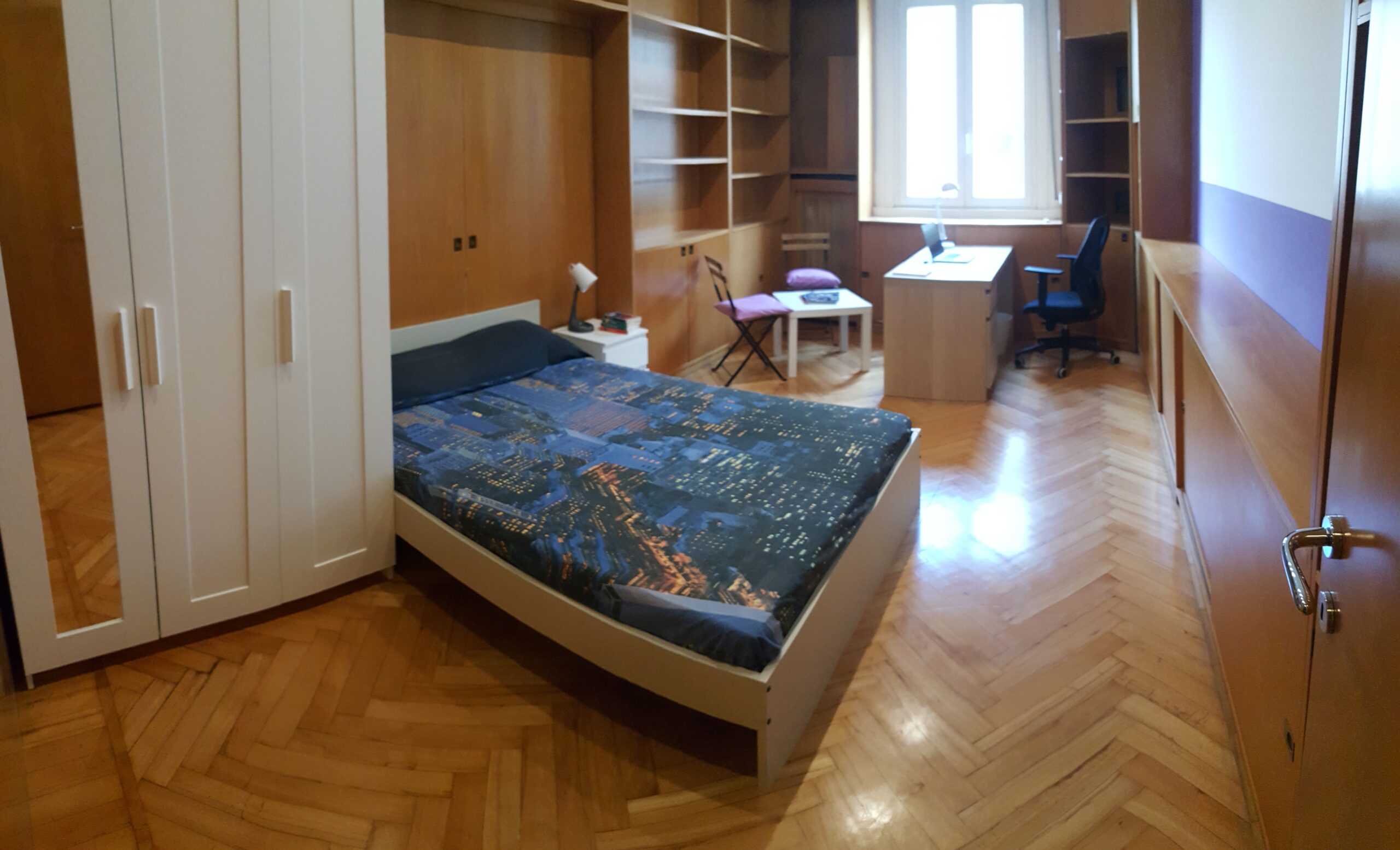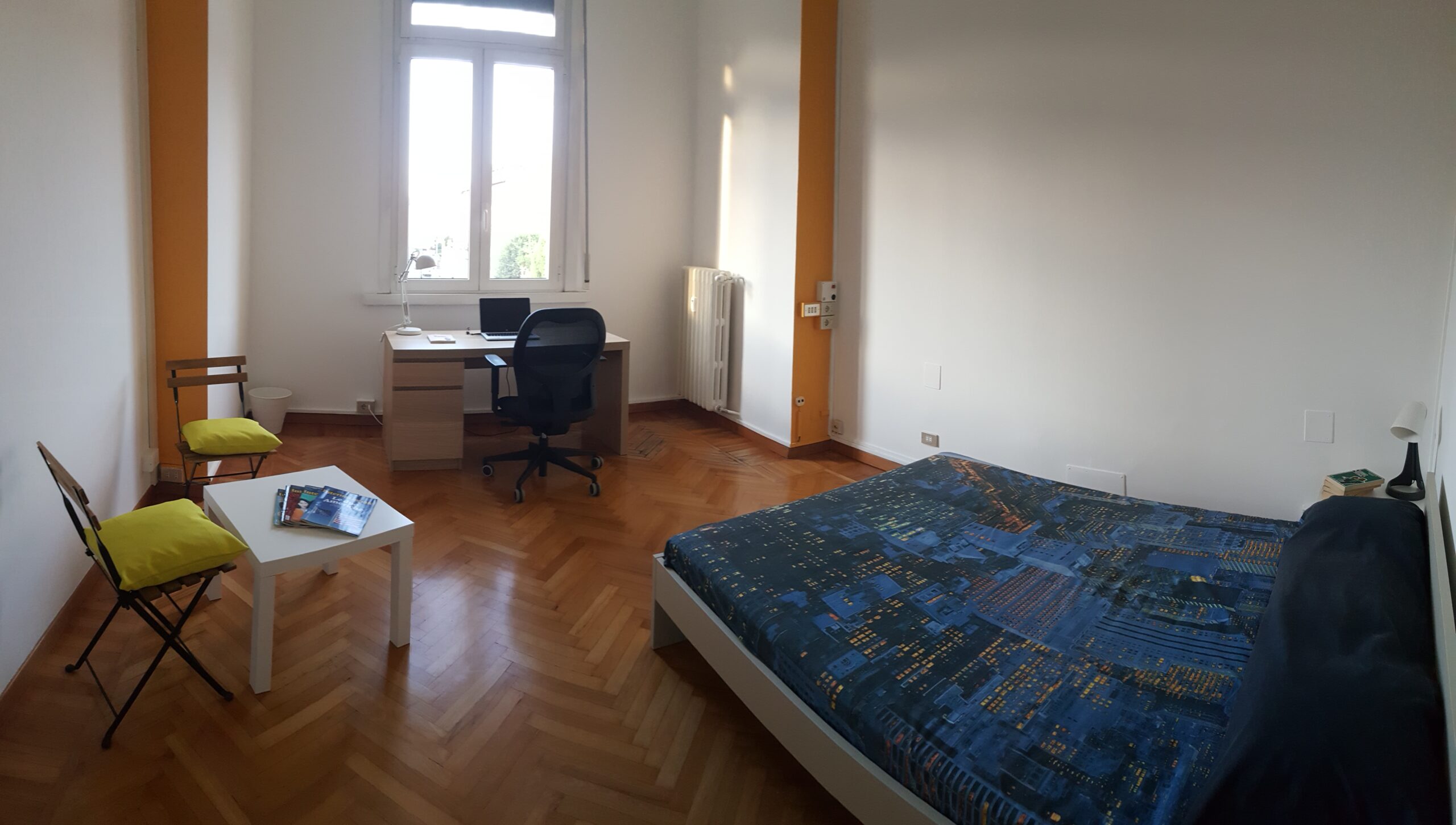 Mini suites are decorated with the colors of the local underground lines that give names to the rooms. Each one is fully furnished for the needs of young workers in smart working or for university students that want to take the advantage of a wide private space in the city centre. Equipment includes 1 wide bed, 1 desk with study chair, 1 wardrobe and a lounge table with 2 sofa chairs for private relaxing moments (chairs in the picture will be replaced by 2 sofa chairs).